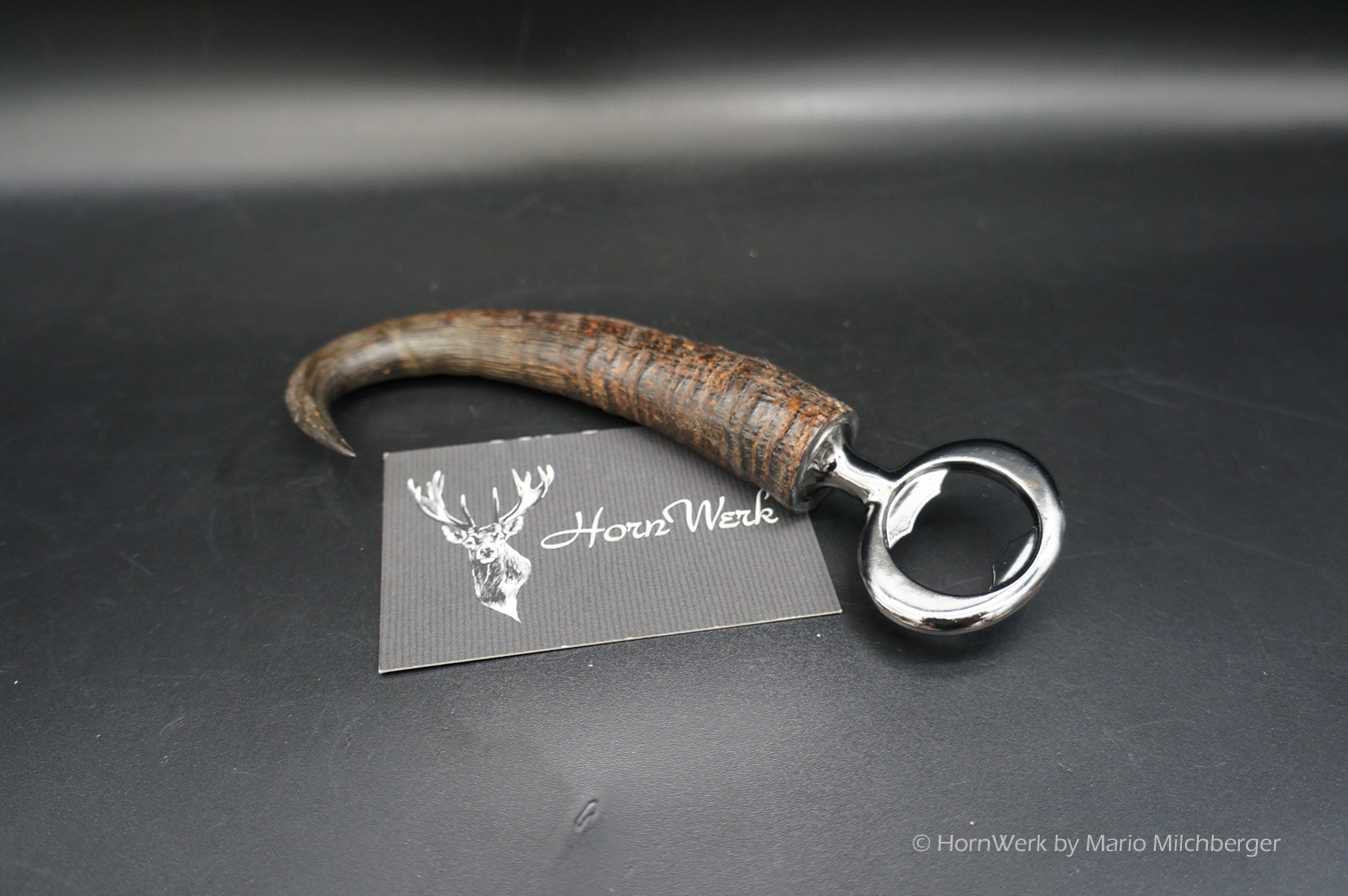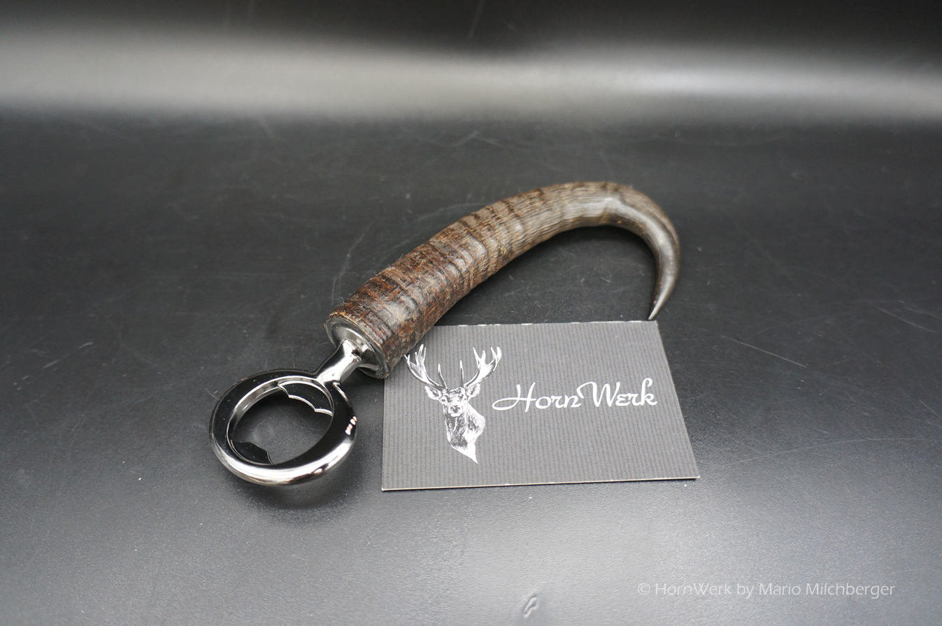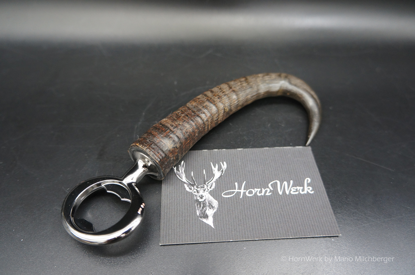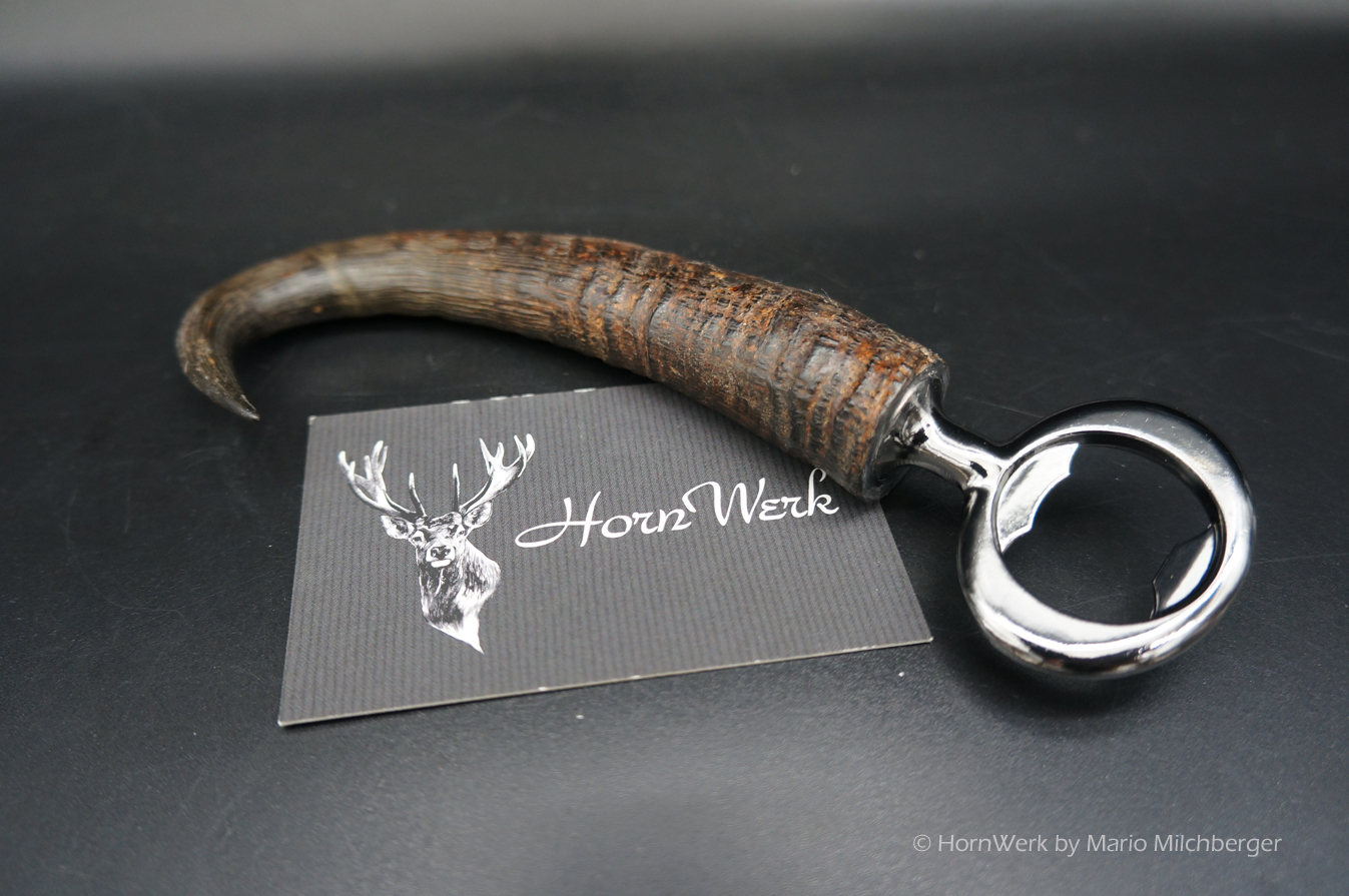 Ein Alltagsgegenstand der nicht Fehlen darf und in großer Stückzahl verfügbar sein sollte. HornWerk Flaschenöffner werden gefertigt aus den besten Rohlingen. Beste Qualität und eine perfekte Verarbeitung zeichnen jeden einzelnen dieser Öffner aus. Besonders beliebt sind wie auch dieser Öffner gefertigt wurde in Gams. In Optik und Funktion einfach großartig und hervorragend als Geschenk für Jäger geeignet.