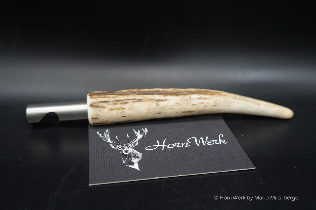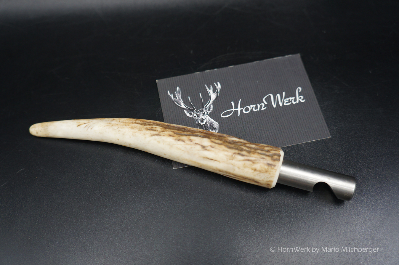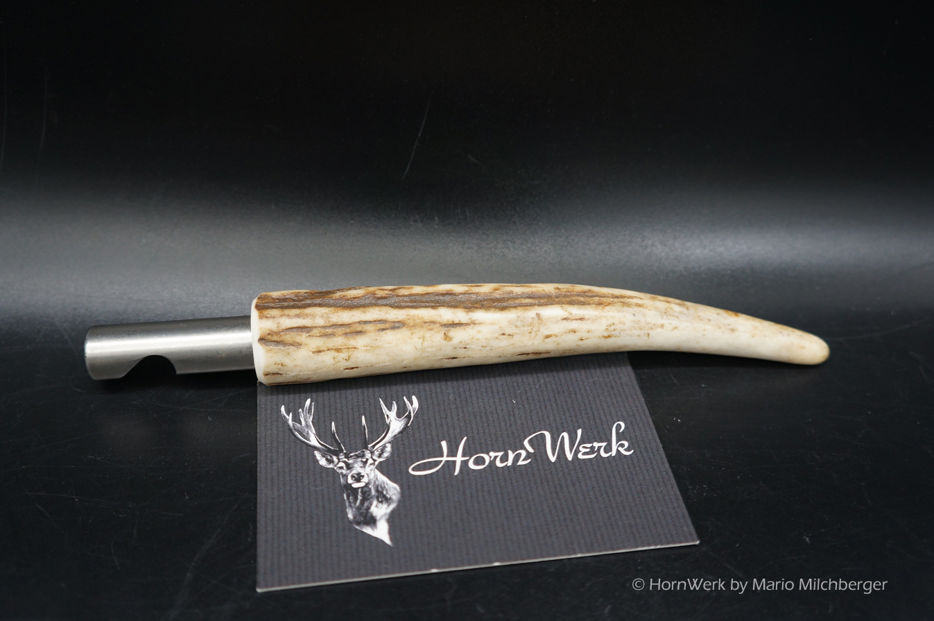 Ein Alltagsgegenstand der nicht Fehlen darf und in großer Stückzahl verfügbar sein sollte. HornWerk Flaschenöffner werden gefertigt aus den besten Rohlingen. Beste Qualität und eine perfekte Verarbeitung zeichnen jeden einzelnen dieser Öffner aus. Dieses schöne Unikat wurde gefertigt aus Hirschhorn. Der Öffner ist ein schwerer Edelstahlstift, welcher aus den Vollen gearbeitet wurde. Dieses Einzelstück liegt großartig in der Hand. Perfekt in in Optik und Funktion. Ich wünsche bereits vorab viel Freude mit diesem einmaligen Stück. Lg Wmh Mario vom HornWerk
