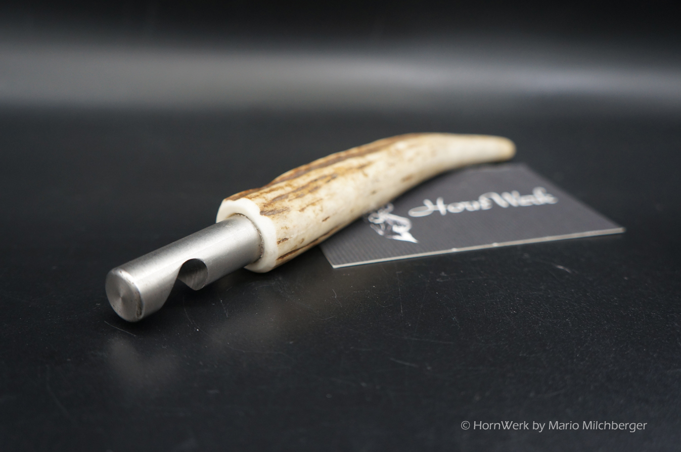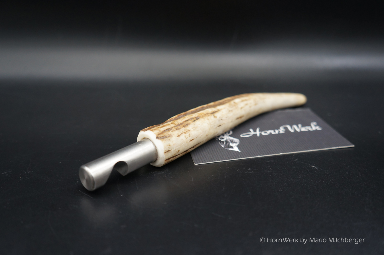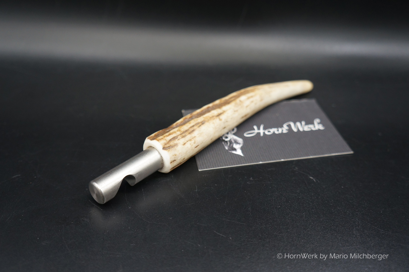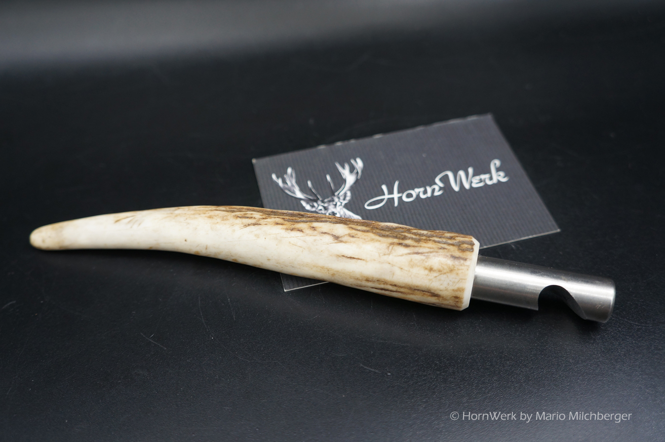 Ein Alltagsgegenstand der nicht Fehlen darf und in großer Stückzahl verfügbar sein sollte. HornWerk Flaschenöffner werden gefertigt aus den besten Rohlingen. Beste Qualität und eine perfekte Verarbeitung zeichnen jeden einzelnen dieser Öffner aus. Dieses schöne Unikat wurde gefertigt aus Hirschhorn. Der Öffner ist ein schwerer Edelstahlstift, welcher aus den Vollen gearbeitet wurde. Dieses Einzelstück liegt großartig in der Hand. Perfekt in in Optik und Funktion. Ich wünsche bereits vorab viel Freude mit diesem einmaligen Stück. Lg Wmh Mario vom HornWerk