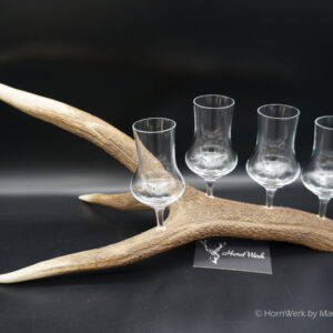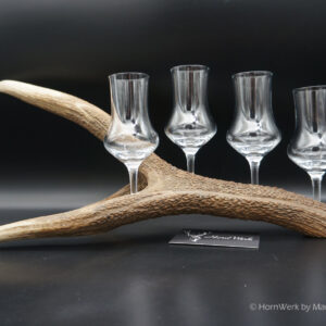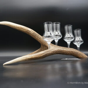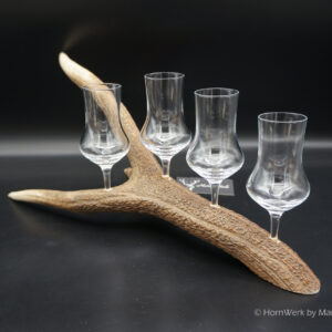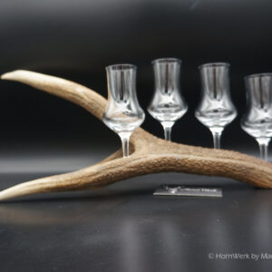 Eine Schnapsbar aus dem HornWerk ist immer ein wahrer Blickfang. Auch dieses Stück stellt ein absolutes Highlight dar. Gefertigt mit vier Grappagläser, welche geschnitten, geschliffen, poliert und perfekt in das Hirschhorn eingepasst wurden. Die Bar steht absolut sicher und perfekt. Ganz besondere Unikate wie dieses Stück werden sämtliche Blicke auf sich ziehen und diese Unikate eignen sich durch Ihre Einzigartigkeit auch perfekt als Geschenk für Jäger. Ich wünsche bereits vorab viel Freude mit diesem schönen Einzelstück. Lg Wmh Mario vom HornWerk