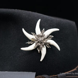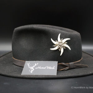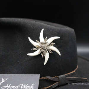 Broschen & Hutanstecker aus dem HornWerk wie Sie schöner und hochwertiger nicht sein könnten. Hergestellt mit den besten Fassungen aus massivem Neusilber. Jeder einzelne Fuchshaken wird in reiner Handarbeit angepasst und in die Fassung eingearbeitet. Einfach ein großartiges und hoch exklusives Stück. Kaum ein Unikat ist besser als Geschenk für Jäger geeignet. Gefertigt wurde dieses Einzelstück in einer modernen Edelweißfassung mit 6 eingearbeiteten Fuchshaken. Besonders bei diesem Stück ist, dass es sich nicht um irgendwelche Haken handelt, sondern es wurden aus über 2000 Fuchshaken genau diese 6 ausgewählt. Bei dieser Hutnadel ist alles perfekt und ich wünsche bereits vorab viel Freude mit diesem großartigen Schmuckstück. Lg Wmh Mario vom HornWerk