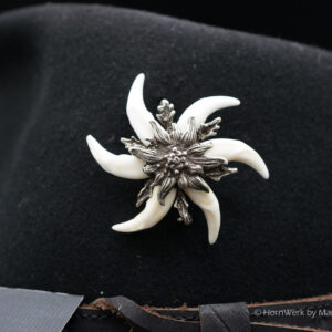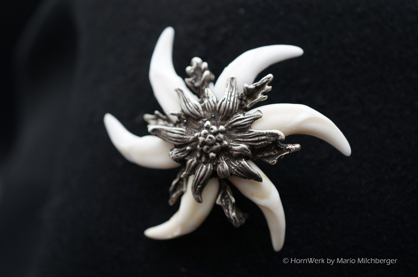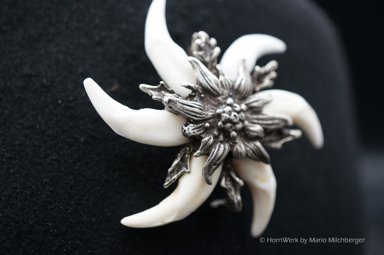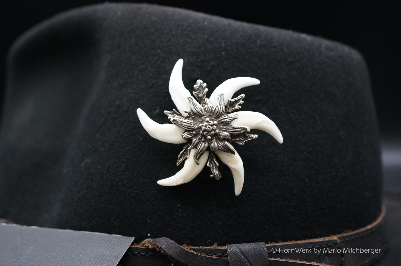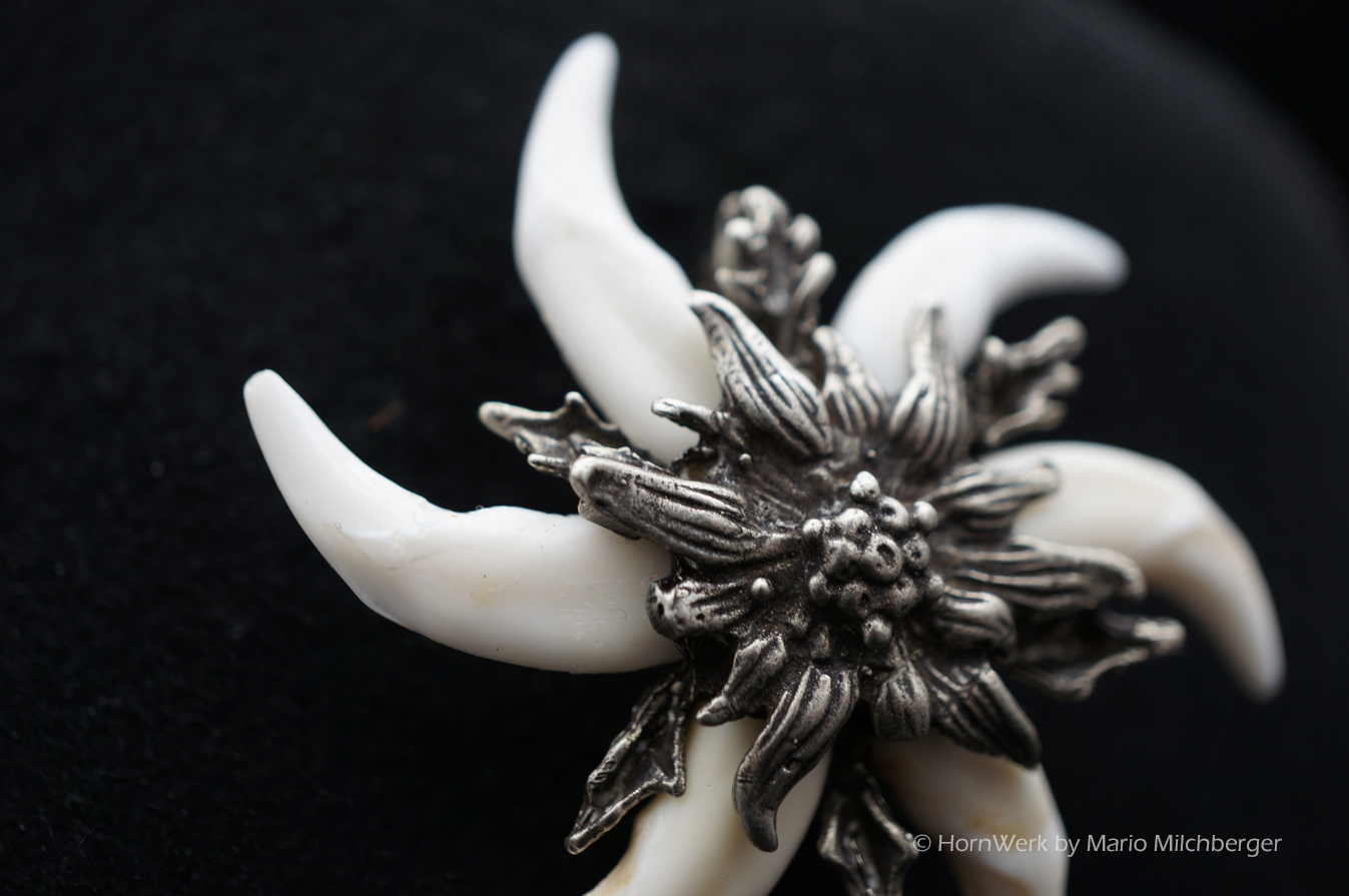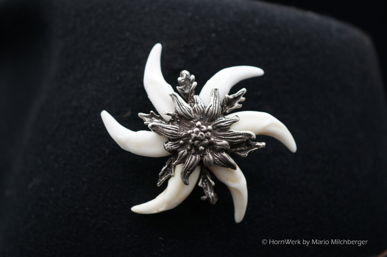 Broschen & Hutanstecker aus dem HornWerk wie Sie schöner und hochwertiger nicht sein könnten. Hergestellt mit den besten Fassungen aus massivem Neusilber. Jeder einzelne Fuchshaken wird in reiner Handarbeit angepasst und in die Fassung eingearbeitet. Einfach ein großartiges und hoch exklusives Stück. Kaum ein Unikat ist besser als Geschenk für Jäger geeignet. Gefertigt wurde dieses Einzelstück in einer modernen Edelweißfassung mit 6 eingearbeiteten Fuchshaken. Besonders bei diesem Stück ist, dass es sich nicht um irgendwelche Haken handelt, sondern es wurden aus über 2000 Fuchshaken genau diese 6 ausgewählt. Bei dieser Hutnadel ist alles perfekt und ich wünsche bereits vorab viel Freude mit diesem großartigen Schmuckstück. Lg Wmh Mario vom HornWerk