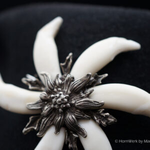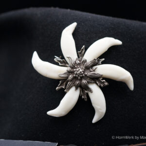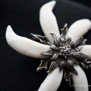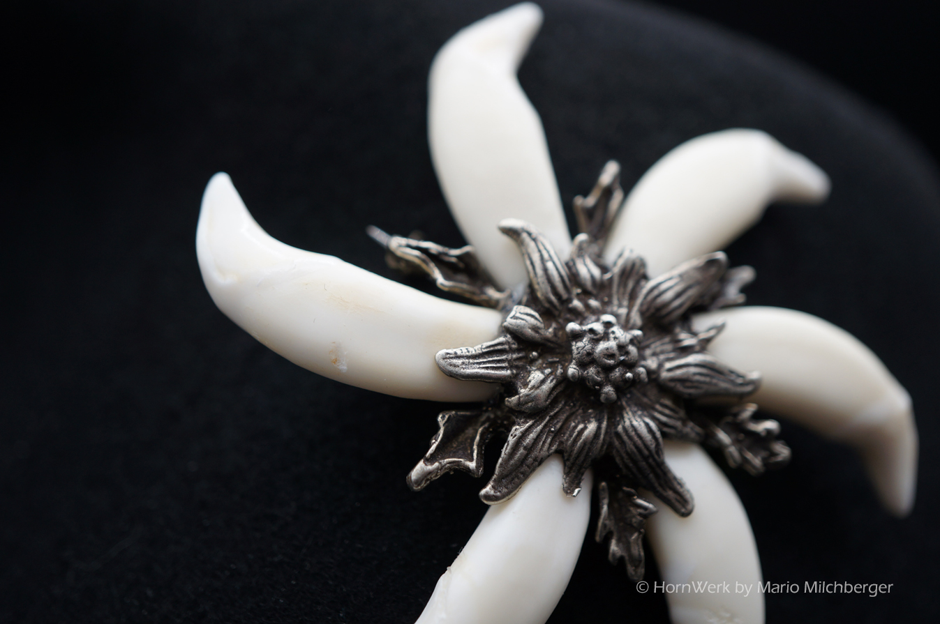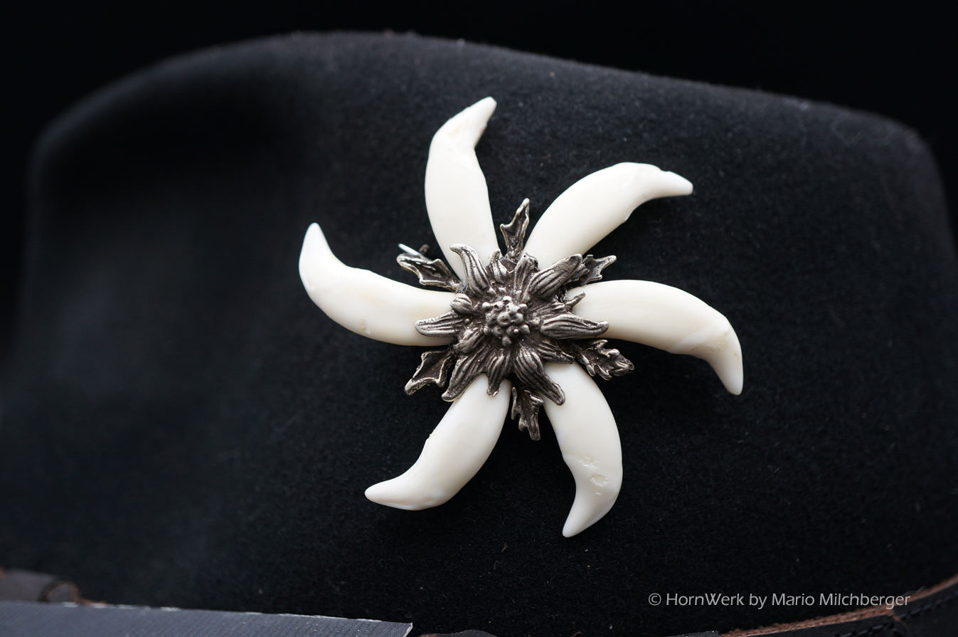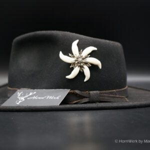 Broschen & Hutanstecker aus dem HornWerk wie Sie schöner und hochwertiger nicht sein könnten. Hergestellt mit den besten Fassungen aus massivem Neusilber. Jeder einzelne Fuchshaken wird in reiner Handarbeit angepasst und in die Fassung eingearbeitet. Einfach ein großartiges und hoch exklusives Stück. Kaum ein Unikat ist besser als Geschenk für Jäger geeignet. Gefertigt wurde dieses Einzelstück in einer modernen Edelweißfassung mit 6 eingebrachten Fuchshaken. Besonders bei diesem Stück ist, dass es sich nicht um irgendwelche Haken handelt, sondern es wurden aus über 2000 Fuchshaken genau diese 6 ausgewählt. Diese Haken sind sehr stark und nur am ende gebogen. Ganz besonders seltene Stücke. Bei dieser Hutnadel ist alles perfekt und ich wünsche bereits vorab viel Freude mit diesem großartigen Schmuckstück. Lg Wmh Mario vom HornWerk