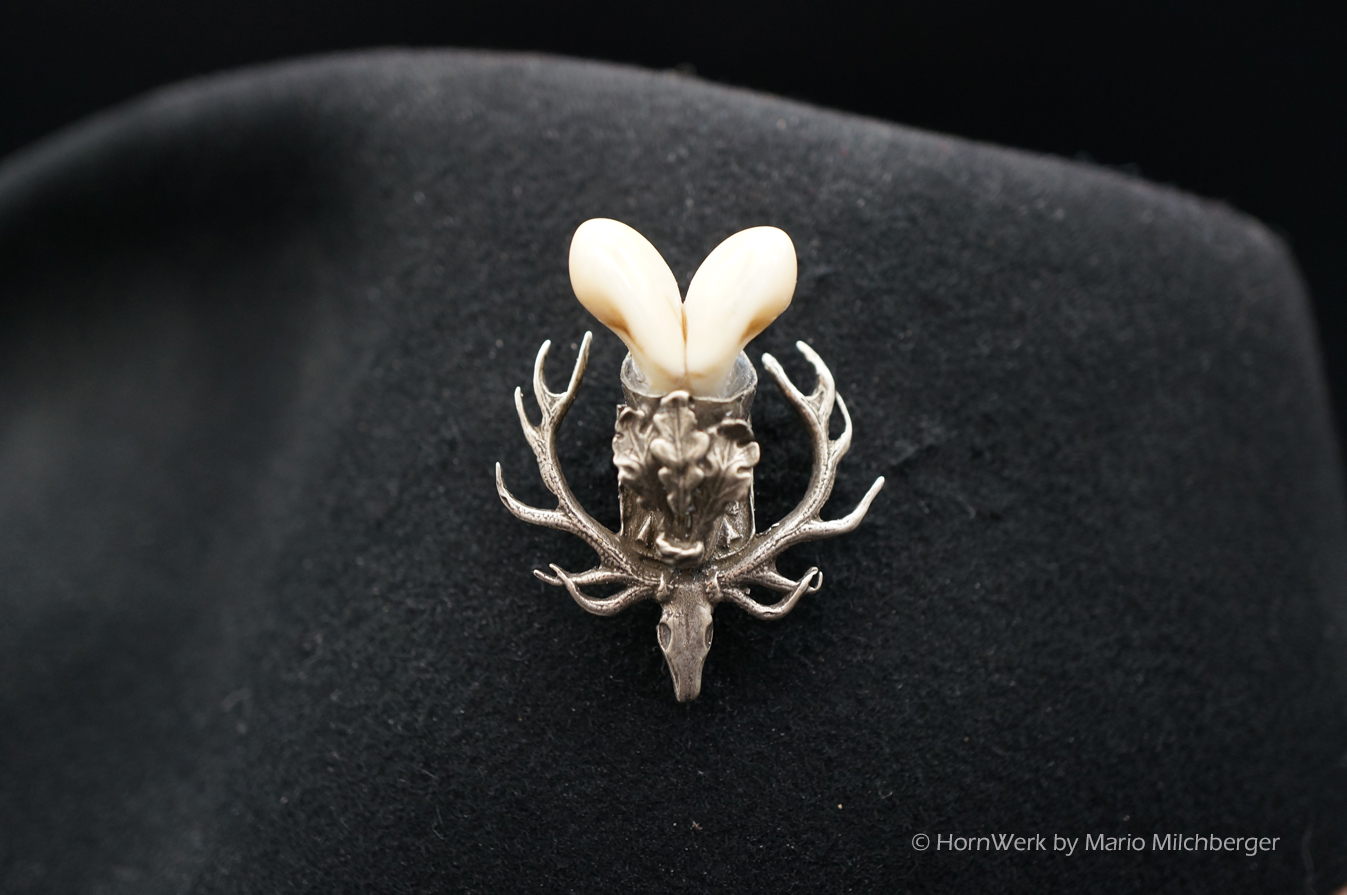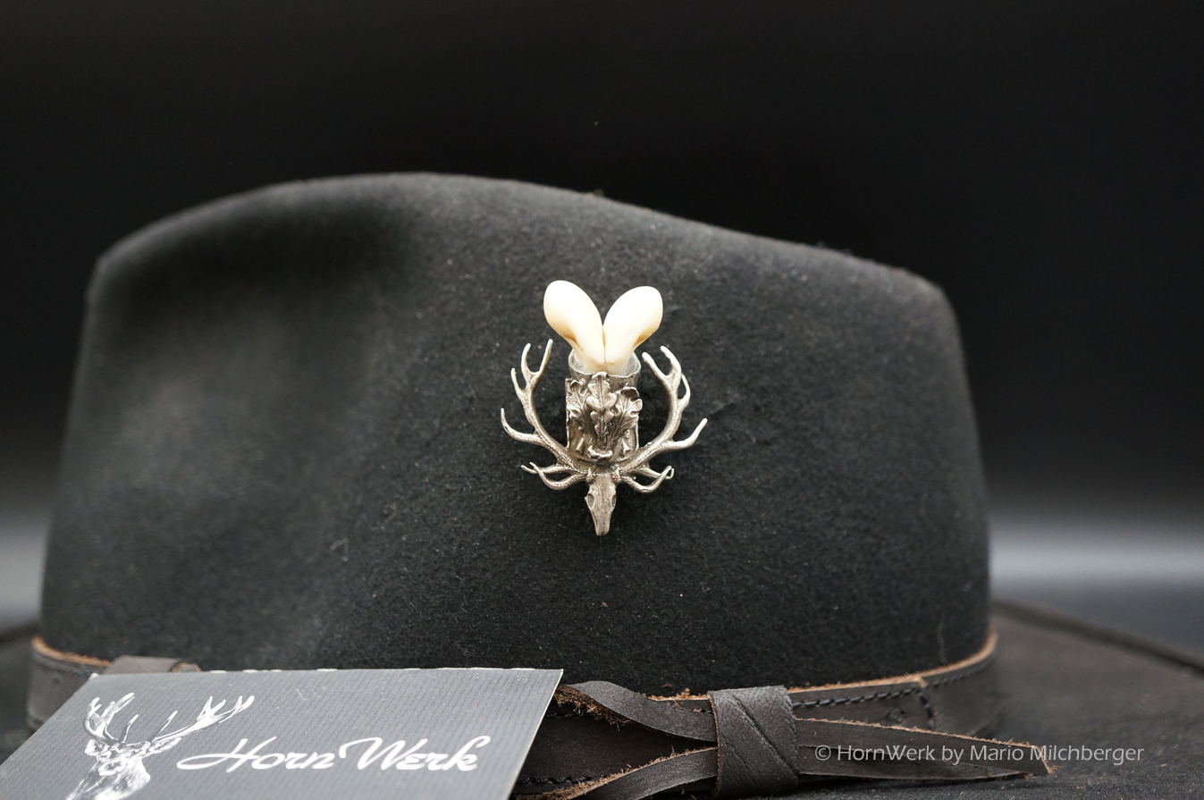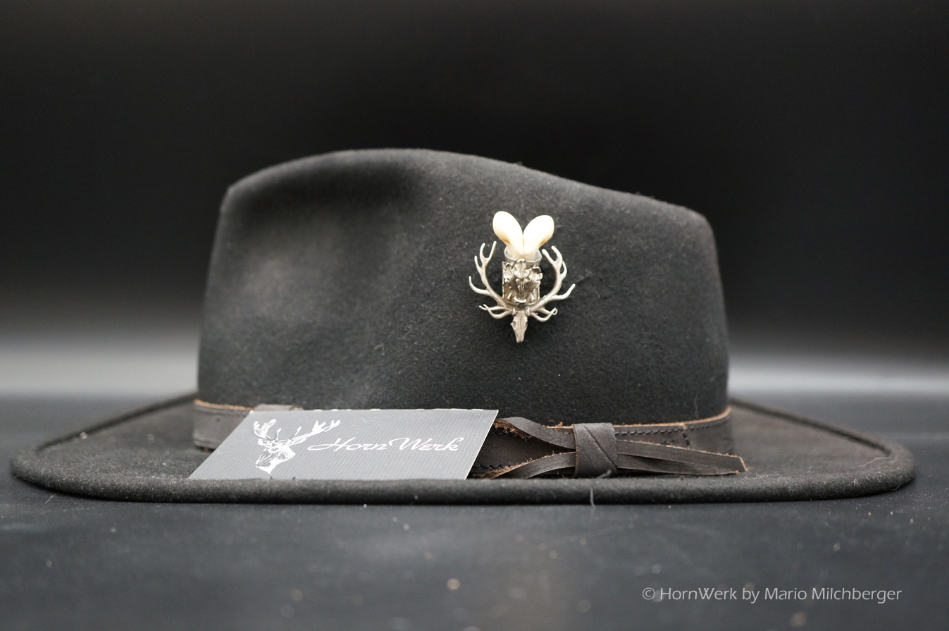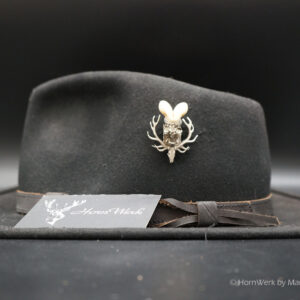 Ein Hutschmuck aus dem HornWerk wie er schöner und hochwertiger nicht sein könnte. Hergestellt aus einer der hochwertigsten Fassung aus echtem Neusilber. In dieses einmalige Stück wurden wunderschöne Grandeln eingearbeitet. Einfach ein großartiges und hoch exklusives Stück welches alle Blicke auf sich ziehen wird. Sichere dir dieses Unikat bevor du es bei jemand anderen siehst und bei diesem einzigartigen Stück sagen Bilder mehr als Worte. Ich wünsche bereits vorab viel Freude mit diesem schönen Unikat. Lg Wmh Mario vom HornWerk