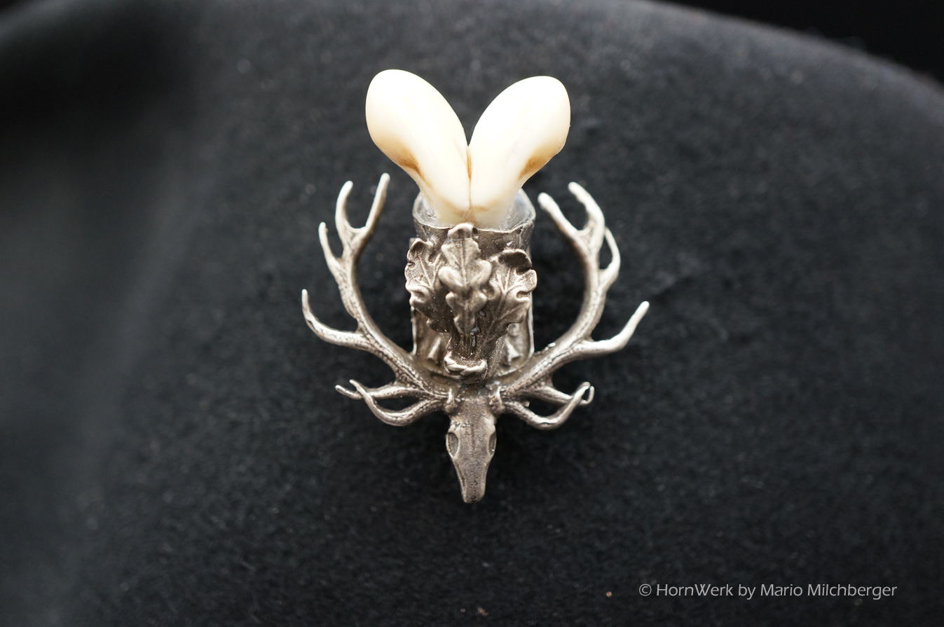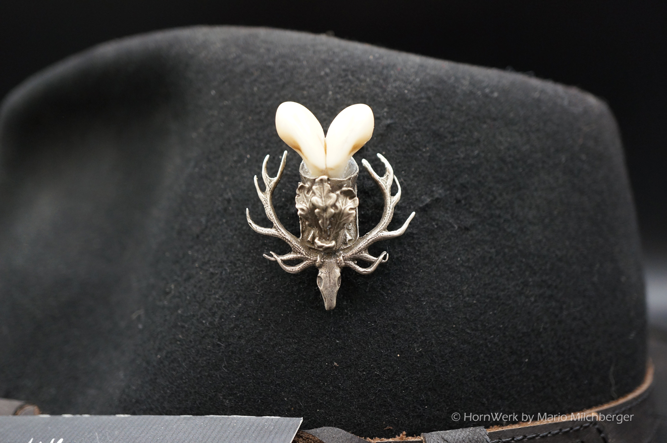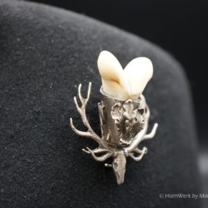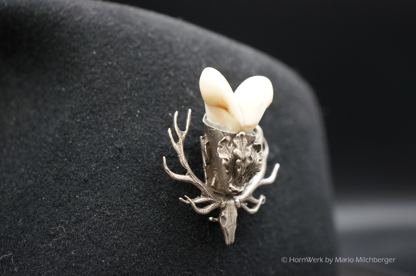 Ein Hutschmuck aus dem HornWerk wie er schöner und hochwertiger nicht sein könnte. Hergestellt aus einer der hochwertigsten Fassung aus echtem Neusilber. In dieses einmalige Stück wurden wunderschöne Grandeln eingearbeitet. Einfach ein großartiges und hoch exklusives Stück welches alle Blicke auf sich ziehen wird. Sichere dir dieses Unikat bevor du es bei jemand anderen siehst und bei diesem einzigartigen Stück sagen Bilder mehr als Worte. Ich wünsche bereits vorab viel Freude mit diesem schönen Unikat. Lg Wmh Mario vom HornWerk