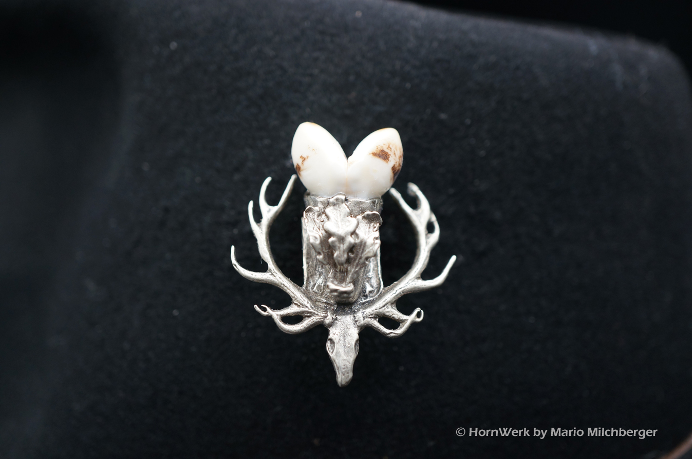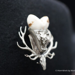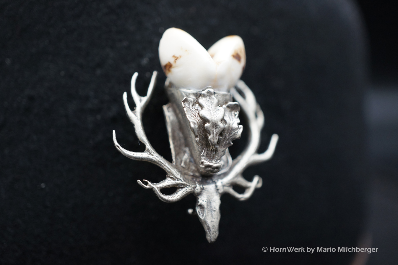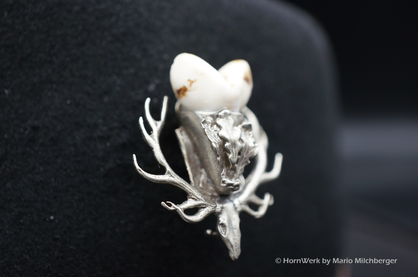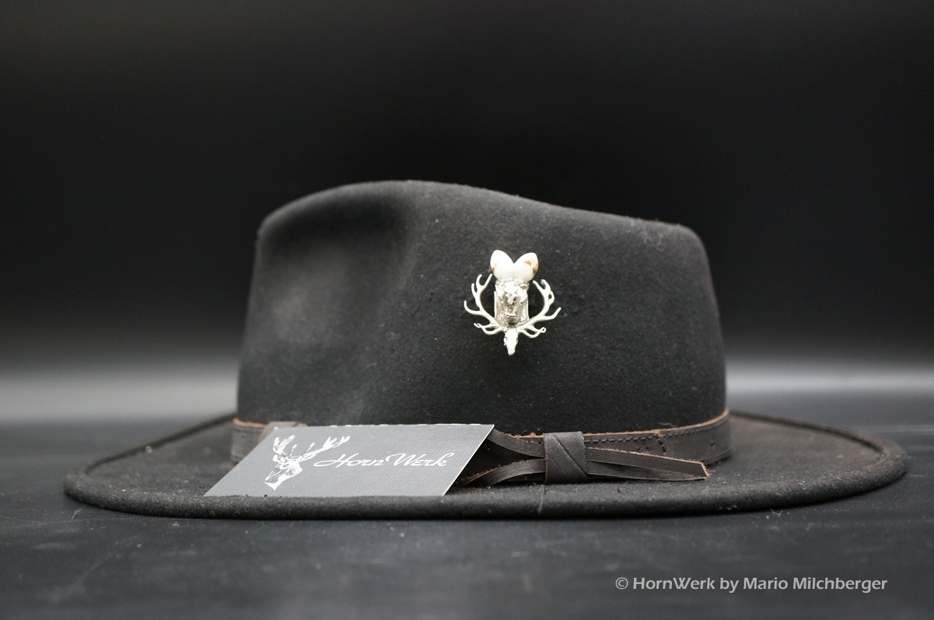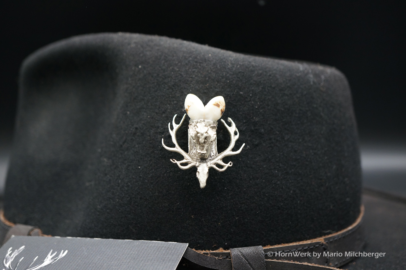Ein Hutschmuck aus dem HornWerk wie er schöner und hochwertiger nicht sein könnte. Hergestellt aus einer der hochwertigsten Fassung aus echtem Neusilber. In dieses einmalige Stück wurden wunderschöne Grandeln eingearbeitet. Einfach ein großartiges und hoch exklusives Stück welches alle Blicke auf sich ziehen wird. Sichere dir dieses Unikat bevor du es bei jemand anderen siehst und bei diesem einzigartigen Stück sagen Bilder mehr als Worte. Ich wünsche bereits vorab viel Freude mit diesem schönen Unikat. Lg Wmh Mario vom HornWerk