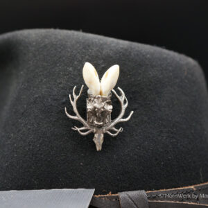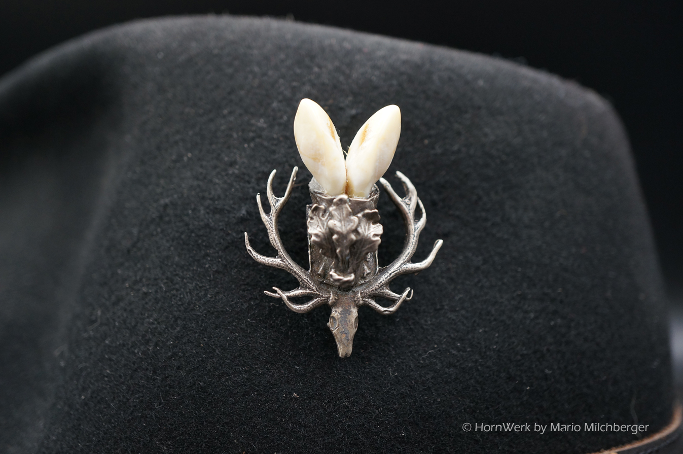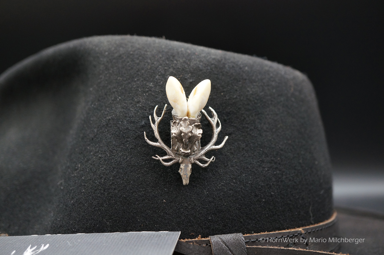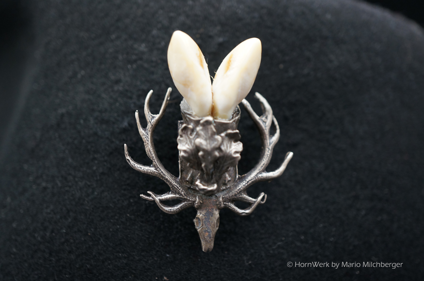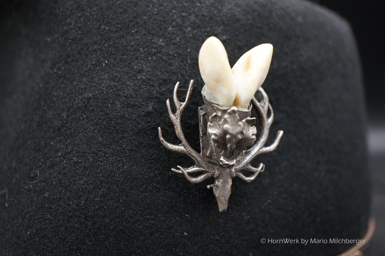 Ein Hutschmuck aus dem HornWerk wie er schöner und hochwertiger nicht sein könnte. Hergestellt aus einer der hochwertigsten Fassung aus echtem Neusilber. In dieses einmalige Stück wurden wunderschöne Grandeln eingearbeitet. Einfach ein großartiges und hoch exklusives Stück welches alle Blicke auf sich ziehen wird. Sichere dir dieses Unikat bevor du es bei jemand anderen siehst und bei diesem einzigartigen Stück sagen Bilder mehr als Worte. Ich wünsche bereits vorab viel Freude mit diesem schönen Unikat. Lg Wmh Mario vom HornWerk