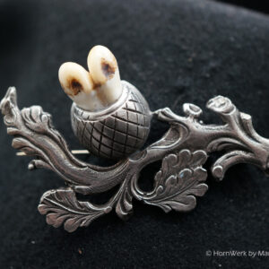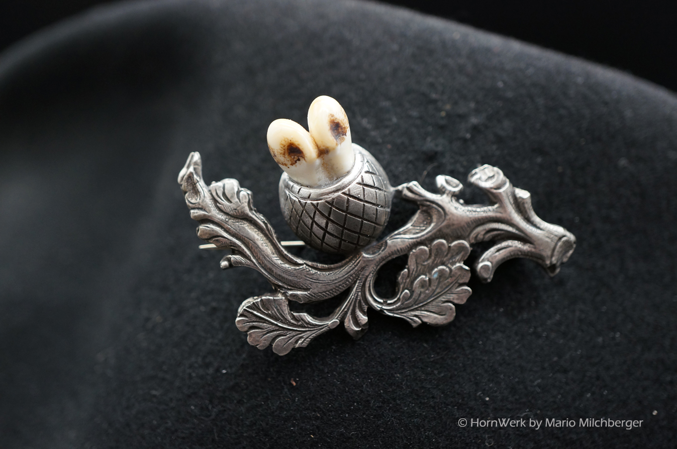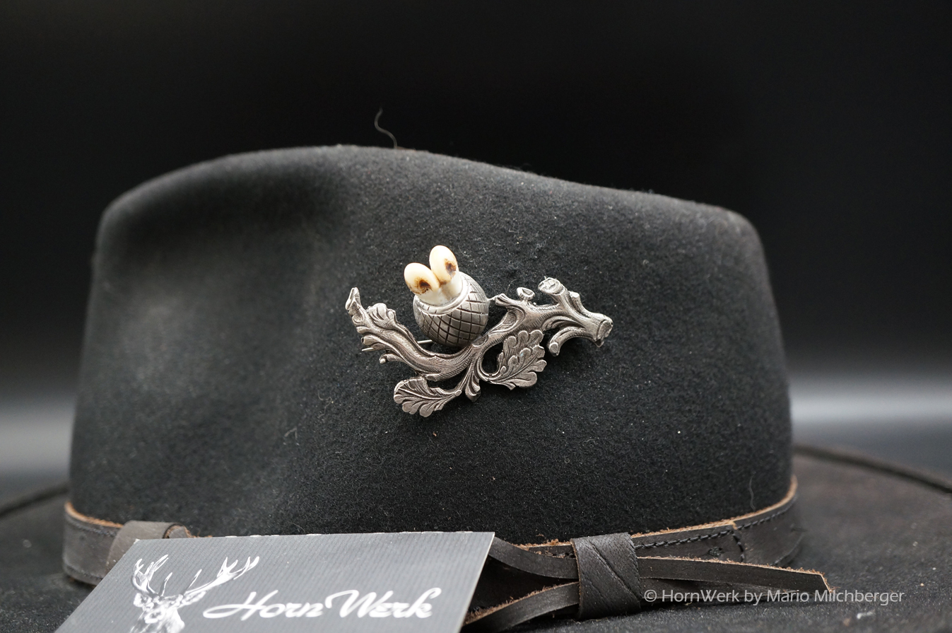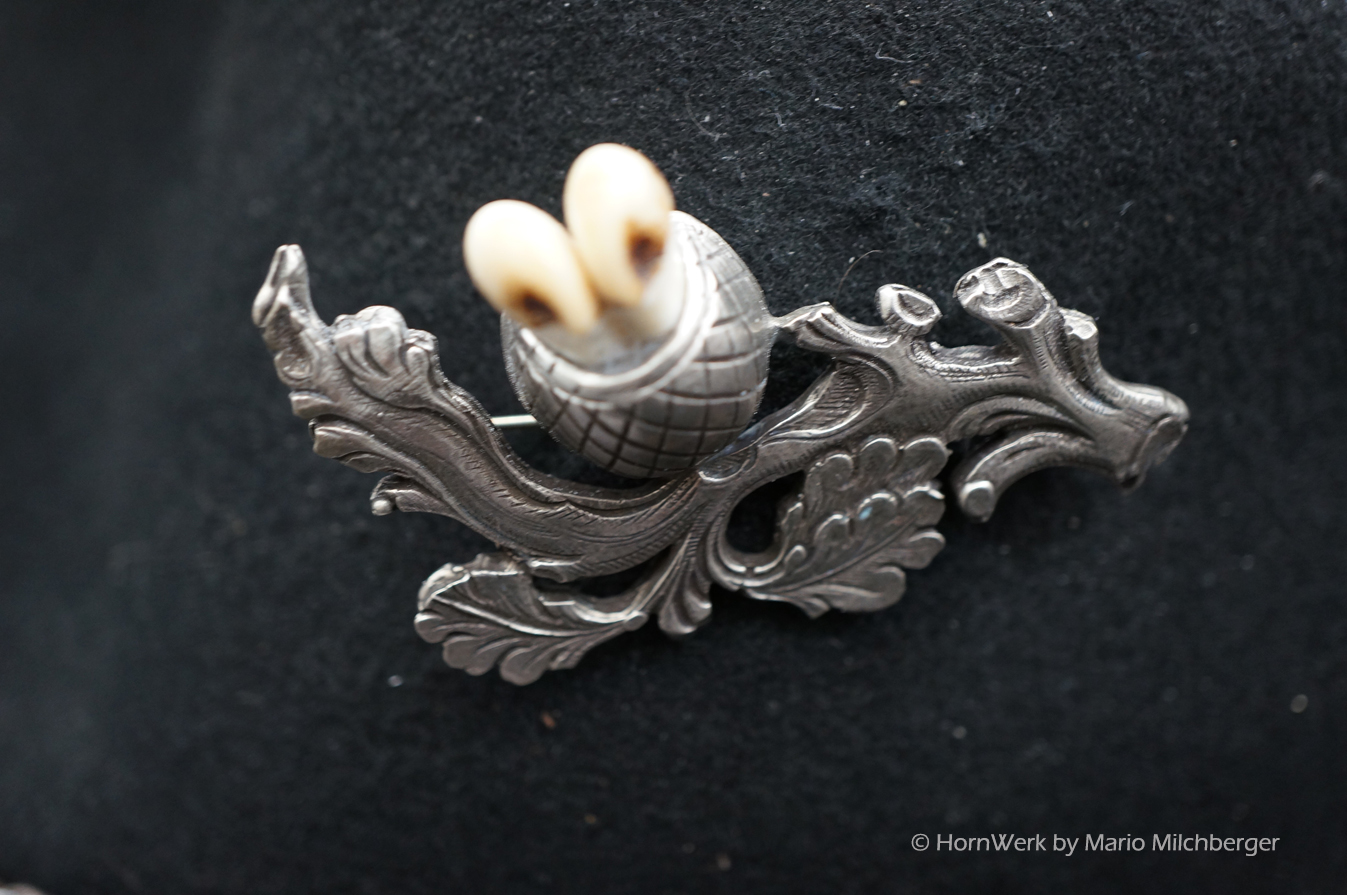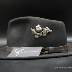 Ein Hutschmuck aus dem HornWerk wie er schöner und hochwertiger nicht sein könnte. Hergestellt aus einer der hochwertigsten Fassung aus echtem Neusilber. In dieses einmalige Stück wurden Grandeln eingearbeitet. Einfach ein großartiges und hoch exklusives Stück, welches alle Blicke auf sich ziehen wird. Sichere dir dieses Unikat bevor du es bei jemand anderen siehst und bei diesem einzigartigen Stück sagen Bilder mehr als Worte. Ich wünsche bereits vorab viel Freude mit diesem schönen Unikat. Lg Wmh Mario vom HornWerk