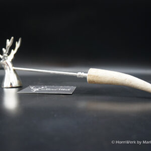Dieser wunderschöne Kerzenlöscher mit Griff aus echtem Hirschgeweih ist ein großartiges Einzelstück um seine Kerzen zu löschen. Die elegante und echt versilberte Hirsch-Oberfläche und das einzigarte Griffstück aus Geweih machen aus diesem Kerzenlöscher etwas ganz besonderes. Du möchtest deine Kerzen mit Stil und Eleganz löschen? Dieser Kerzenlöscher ist wie geschaffen dafür und ich wünsche bereits vorab viel Freude mit diesem wundervollen Einzelstück. Lg Wmh Mario vom HornWerk.