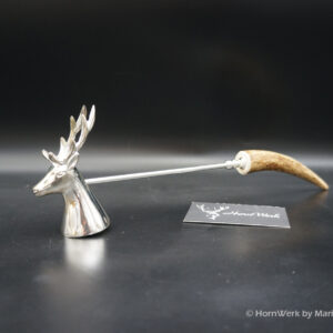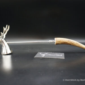 Dieser wunderschöne Kerzenlöscher mit Griff aus echtem Hirschgeweih ist ein großartiges Einzelstück um seine Kerzen zu löschen. Die elegante und echt versilberte Hirsch-Oberfläche und das einzigarte Griffstück aus Geweih machen aus diesem Kerzenlöscher etwas ganz besonderes. Du möchtest deine Kerzen mit Stil und Eleganz löschen? Dieser Kerzenlöscher ist wie geschaffen dafür und ich wünsche bereits vorab viel Freude mit diesem wundervollen Einzelstück. Lg Wmh Mario vom HornWerk.