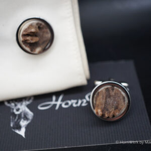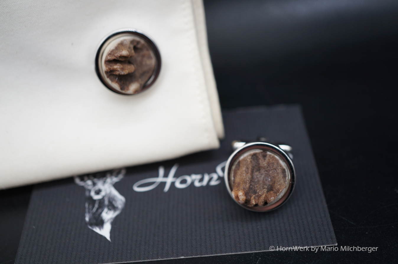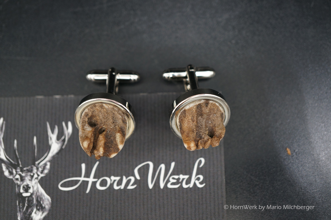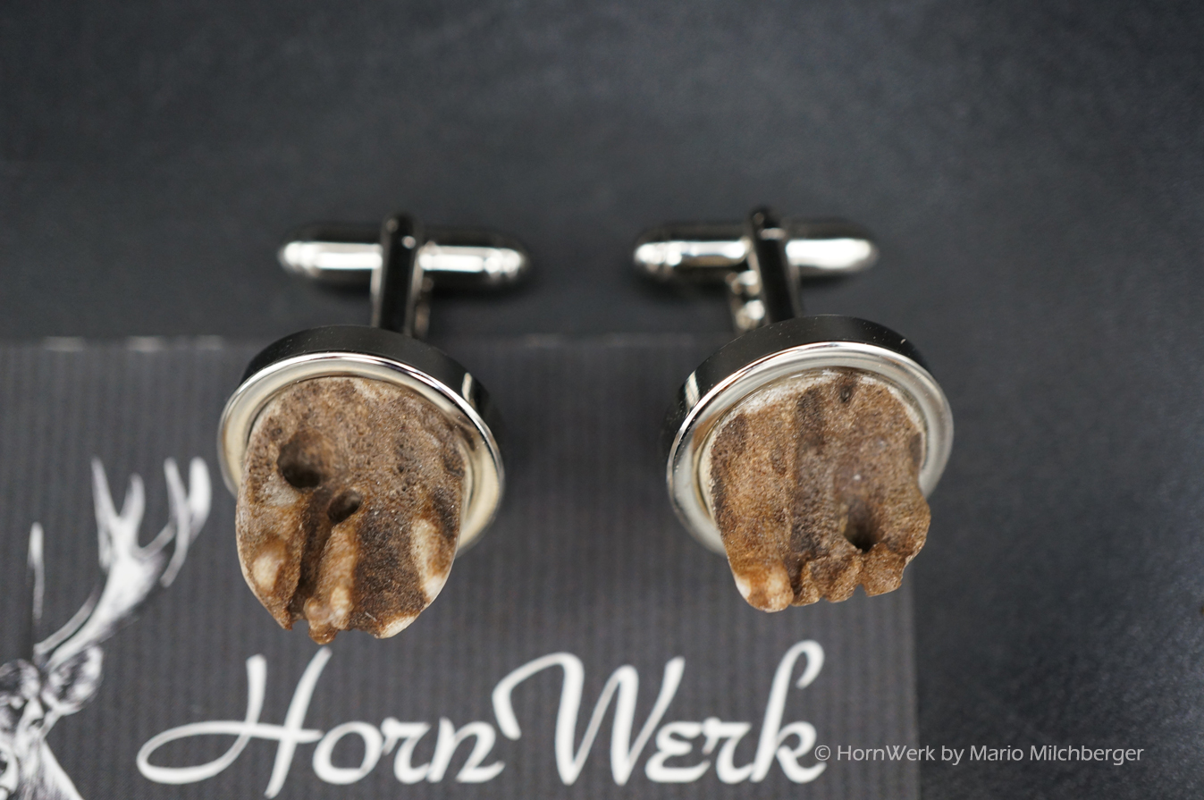 HornWerk Manschettenknöpfe für Jäger sind das absolutes Highlight beim Auftritt mit Hemd. Gefertigt wurden diese beiden Unikate aus Hirschhorn. Jedes dieser Einzelstücke ist an Optik kaum zu überbieten und diese Schmuckstücke verleihen seinem künftigen Träger das gewisse Etwas. Der Durchmesser beträgt bei diesen Einzelstücken 19mm. Diese Stücke sind sehr auffallend, da Sie aus der Hirschrose gefertigt wurden. Deshalb haben Sie auch eine Tiefe von über 1CM. Modernes Design mit handwerklicher Kunst aus dem HornWerk kombiniert wertet jede Tracht weiter auf und dieses Set wird unzählige Blicke auf sich ziehen. Laufe nicht Gefahr, dieses Schmuckstück bei jemand anderem zu sehen denn dieses besondere Set wird für große Begeisterung sorgen. Einzigartige Stücke für einzigartige Menschen. So sehen und leben wir das im HornWerk. Lg Wmh Mario vom HornWerk