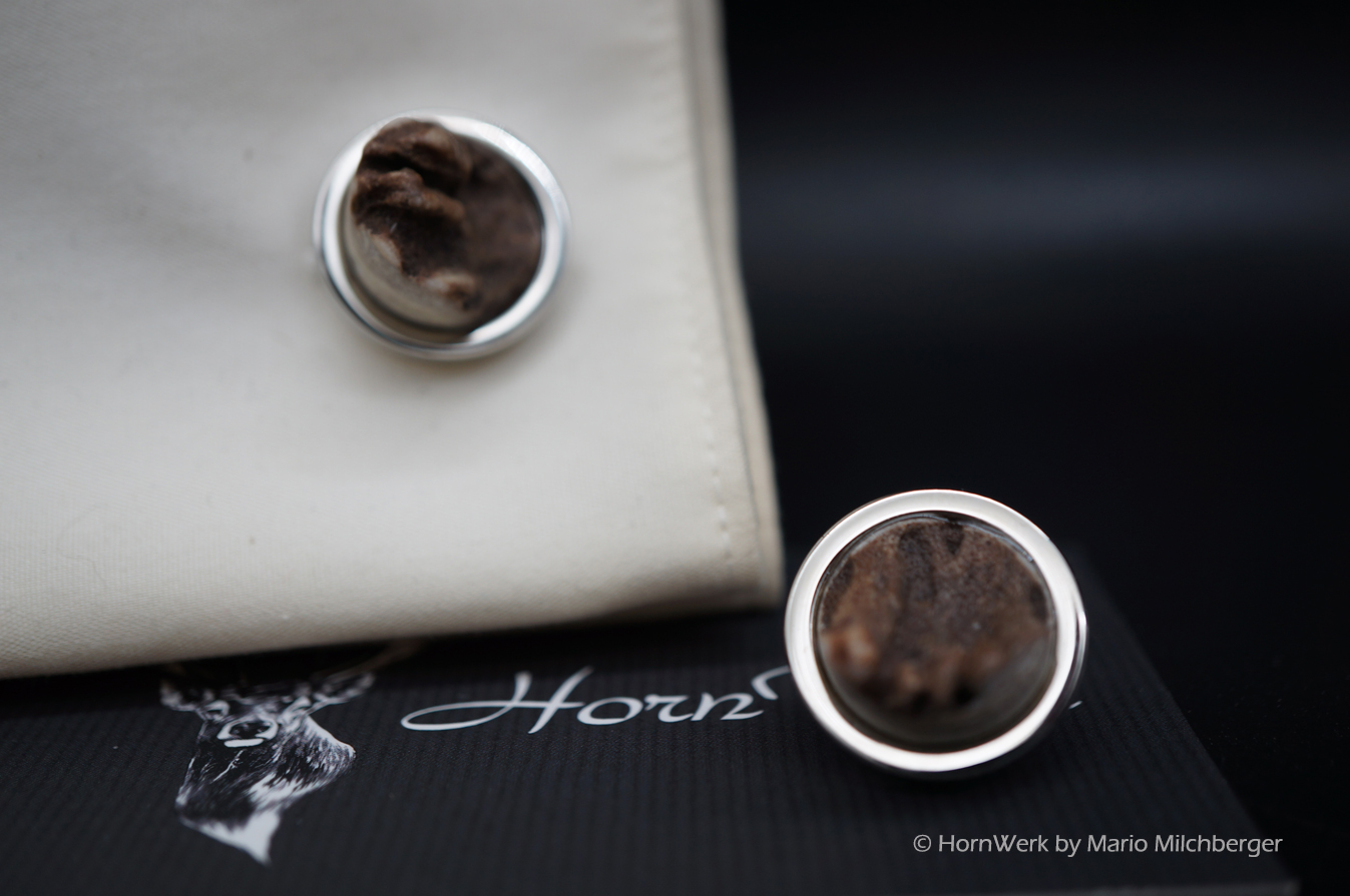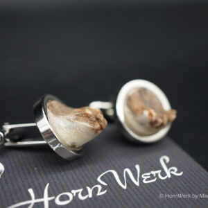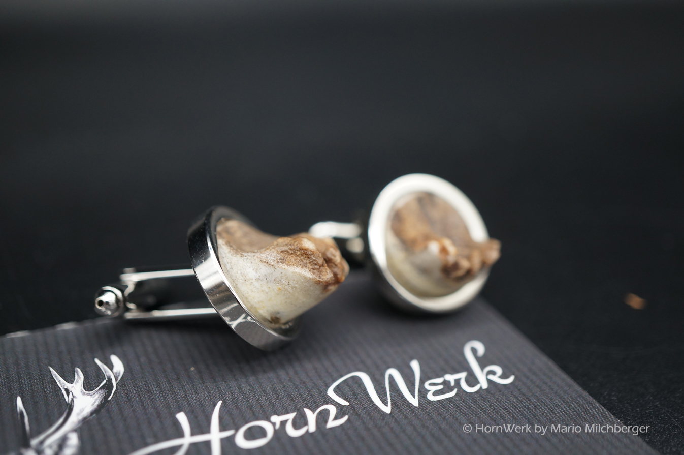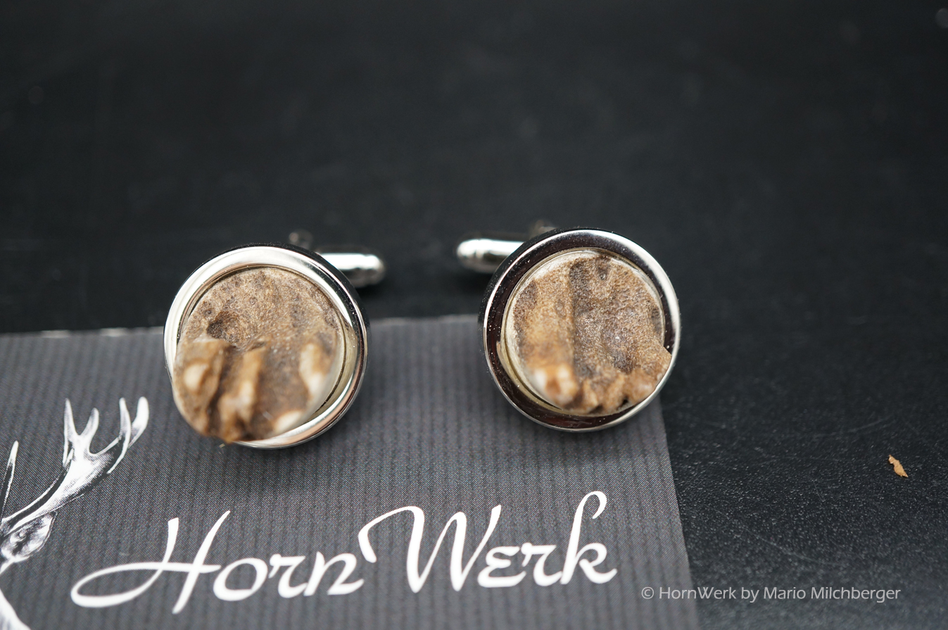 HornWerk Manschettenknöpfe für Jäger sind das absolutes Highlight beim Auftritt mit Hemd. Gefertigt wurden diese beiden Unikate aus Hirschhorn. Jedes dieser Einzelstücke ist an Optik kaum zu überbieten und diese Schmuckstücke verleihen seinem künftigen Träger das gewisse Etwas. Der Durchmesser beträgt bei diesen Einzelstücken 19mm. Diese Stücke sind sehr auffallend, da Sie aus der Hirschrose gefertigt wurden. Deshalb haben Sie auch eine Tiefe von über 1CM. Modernes Design mit handwerklicher Kunst aus dem HornWerk kombiniert wertet jede Tracht weiter auf und dieses Set wird unzählige Blicke auf sich ziehen. Laufe nicht Gefahr, dieses Schmuckstück bei jemand anderem zu sehen denn dieses besondere Set wird für große Begeisterung sorgen. Einzigartige Stücke für einzigartige Menschen. So sehen und leben wir das im HornWerk. Lg Wmh Mario vom HornWerk