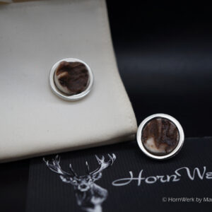 HornWerk Manschettenknöpfe für Jäger sind das absolutes Highlight beim Auftritt mit Hemd. Gefertigt wurden diese beiden Unikate aus Hirschhorn. Jedes dieser Einzelstücke ist an Optik kaum zu überbieten und diese Schmuckstücke verleihen seinem künftigen Träger das gewisse Etwas. Der Durchmesser beträgt bei diesen Einzelstücken 19mm. Diese Stücke sind sehr auffallend, da Sie aus der Hirschrose gefertigt wurden. Deshalb haben Sie auch eine Tiefe von ca. 1cm. Modernes Design mit handwerklicher Kunst aus dem HornWerk kombiniert wertet jede Tracht weiter auf und dieses Set wird unzählige Blicke auf sich ziehen. Laufe nicht Gefahr, dieses Schmuckstück bei jemand anderem zu sehen denn dieses besondere Set wird für große Begeisterung sorgen. Einzigartige Stücke für einzigartige Menschen. So sehen und leben wir das im HornWerk. Lg Wmh Mario vom HornWerk
