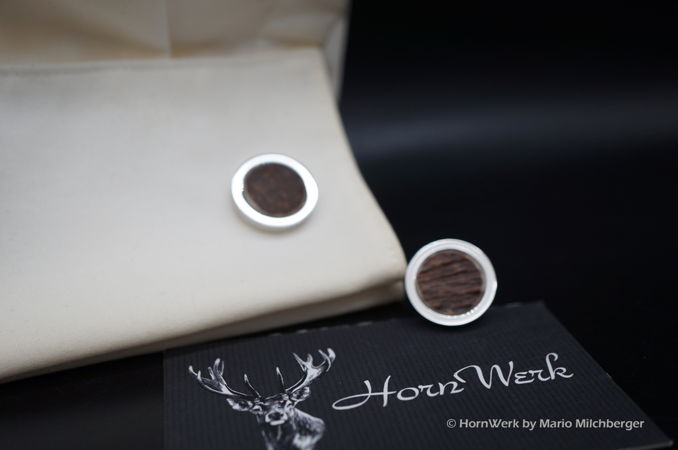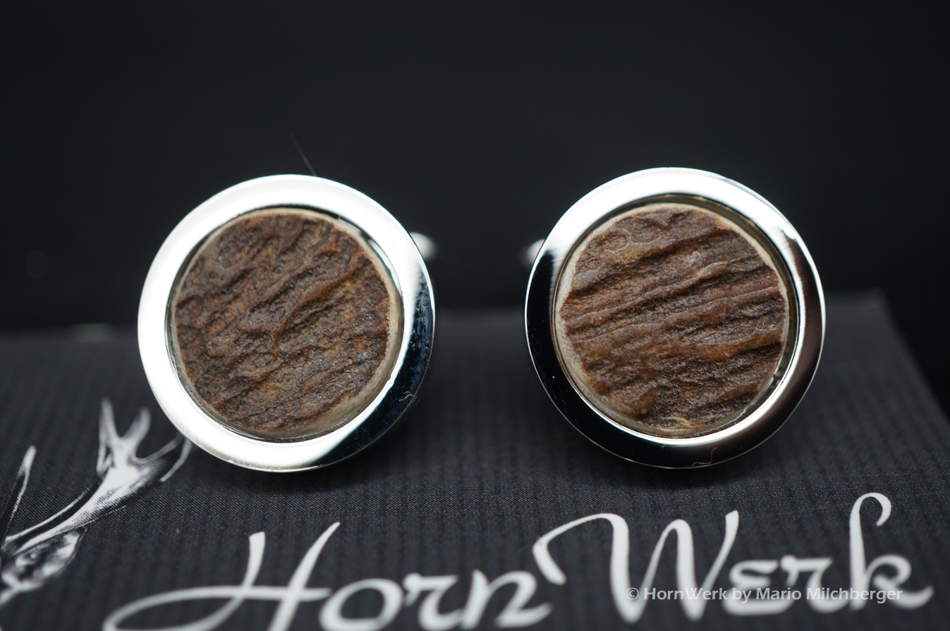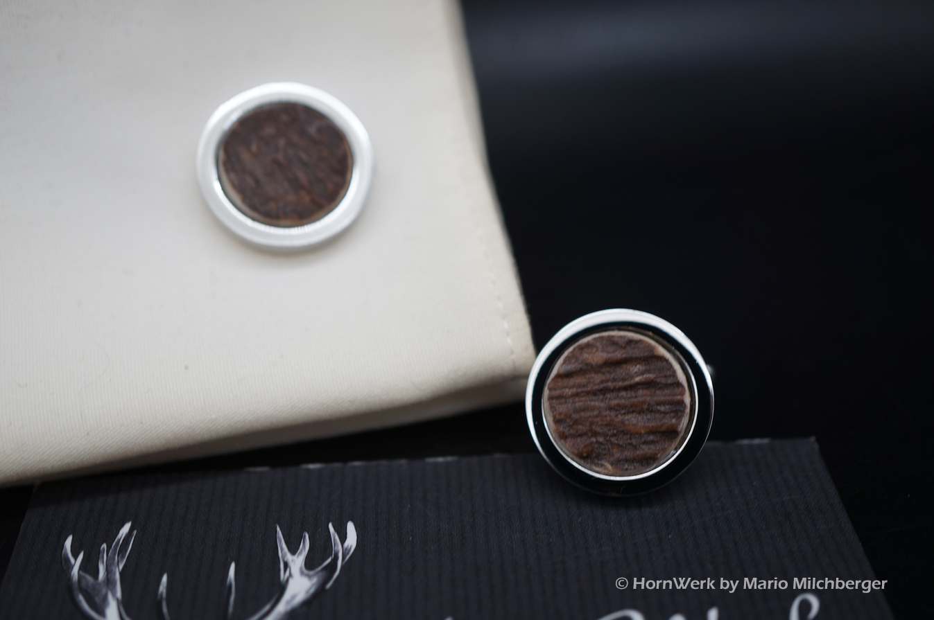 HornWerk Manschettenknöpfe für Jäger sind das absolutes Highlight beim Auftritt mit Hemd. Gefertigt wurden diese beiden Unikate aus Hirschhorn. Jedes dieser Einzelstücke ist an Optik kaum zu überbieten und diese Schmuckstücke verleihen seinem künftigen Träger das gewisse Etwas. Der Durchmesser beträgt bei diesen Einzelstücken 19mm. Modernes Design mit handwerklicher Kunst aus dem HornWerk kombiniert wertet jede Tracht weiter auf und dieses Set wird unzählige Blicke auf sich ziehen. Laufe nicht Gefahr, dieses Schmuckstück bei jemand anderem zu sehen denn dieses besondere Set wird für große Begeisterung sorgen. Einzigartige Stücke für einzigartige Menschen. So sehen und leben wir das im HornWerk. Lg Wmh Mario vom HornWerk (75)