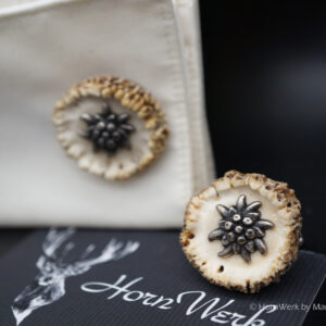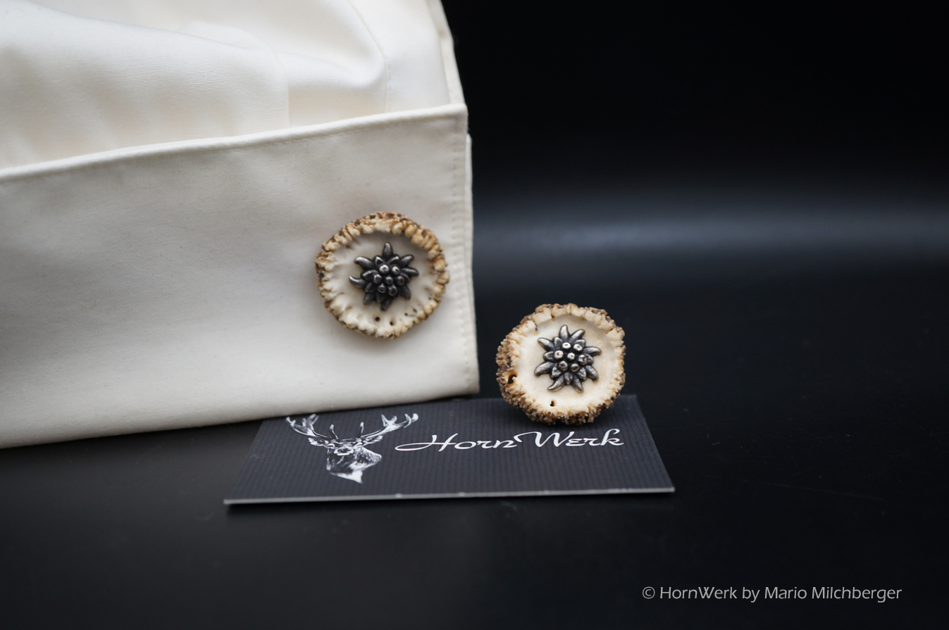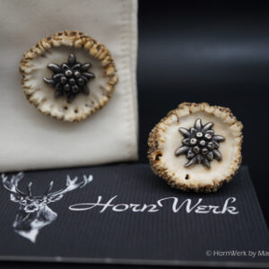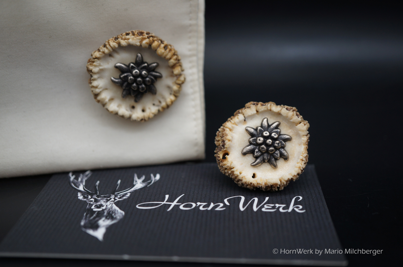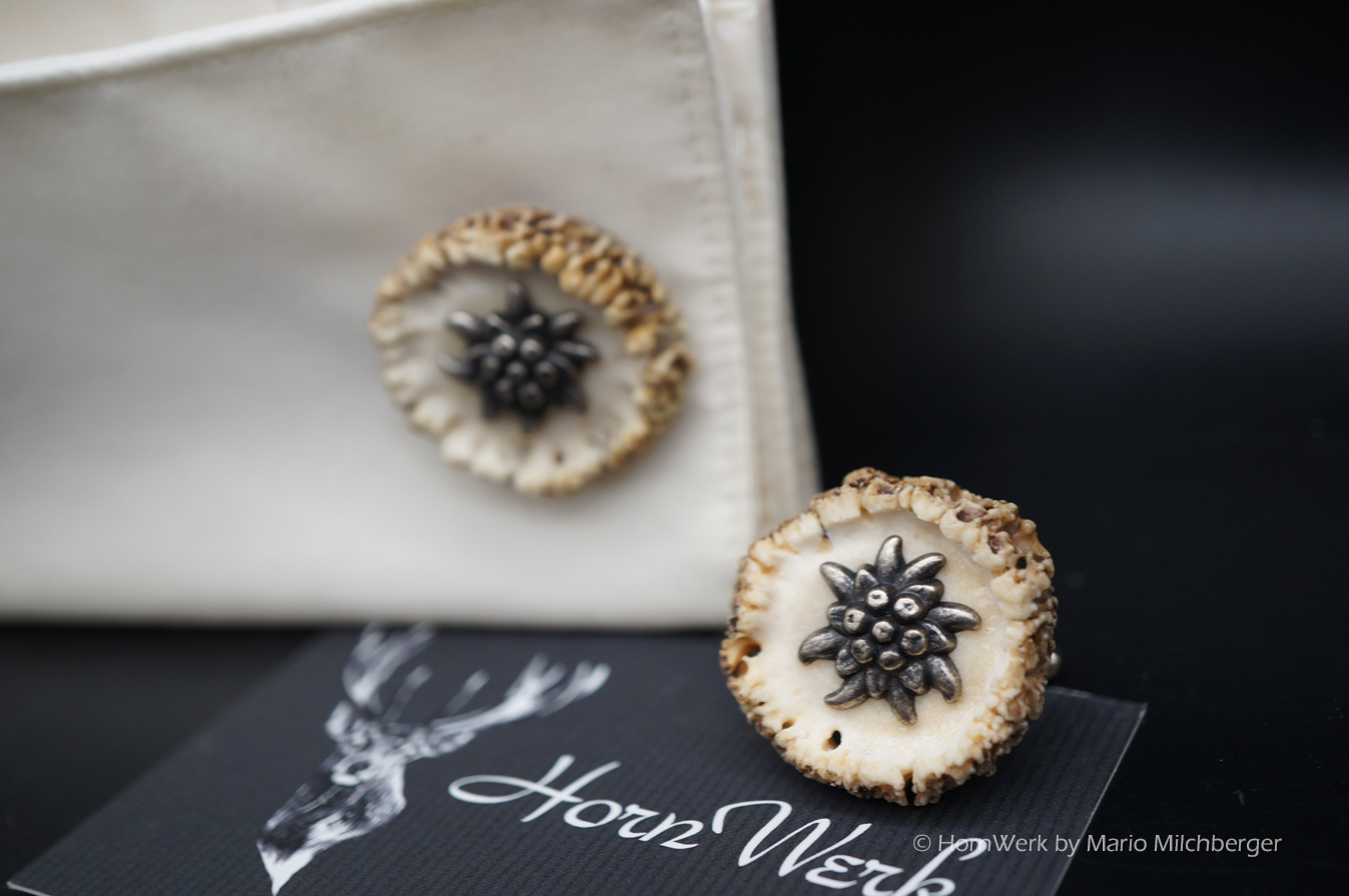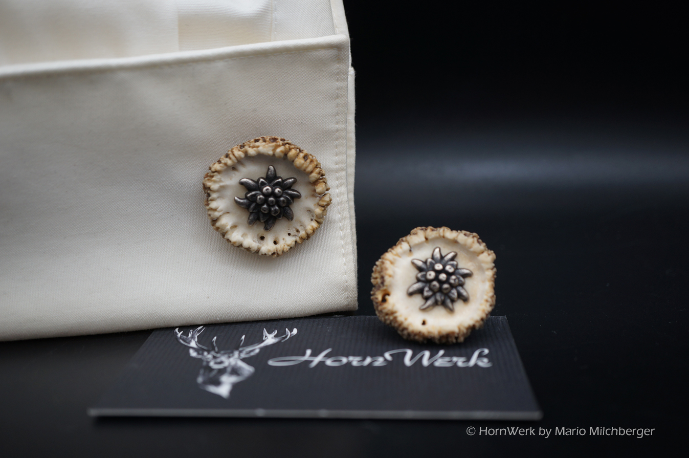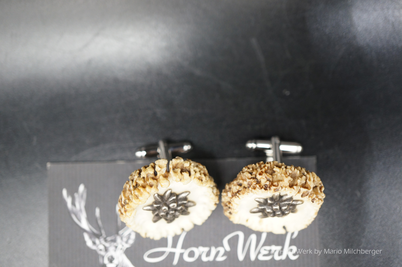 HornWerk Manschettenknöpfe für Jäger sind das absolutes Highlight beim Auftritt mit Hemd. Diese einmaligen Stücke wurden hergestellt aus Rehrosen. Für Manschetten eignet sich nur eine von ca. 200 Rosen. Es werden nur die besten und schönsten verwendet. Jedes dieser Einzelstücke ist an Optik kaum zu überbieten und diese Schmuckstücke verleihen seinem künftigen Träger das gewisse etwas. Modernes Design mit handwerklicher Kunst aus dem HornWerk kombiniert wertet jede Tracht weiter auf und dieses Set wird unzählige Blicke auf sich ziehen. Laufe nicht Gefahr, dieses Schmuckstück bei jemand anderem zu sehen denn dieses besondere Set wird für große Begeisterung sorgen. Trage oder schenke einzigartiges und die Gefahr, dass jemand das selbe Stück trägt ist völlig ausgeschlossen. Einzigartige Stücke für einzigartige Menschen. So sehen und leben wir das im HornWerk. Lg Wmh Mario vom HornWerk.