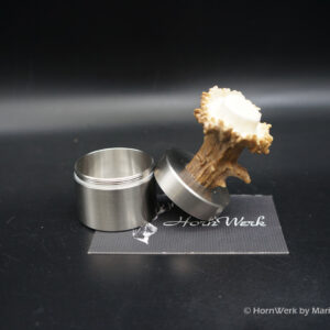 Pillendosen aus dem HornWerk sind ganz besondere Stücke und einfach perfekt für Jäger. Dickwandige und sehr hochwertige Edelstahldosen mit Drehverschluss werden für diese exklusiven Einzelstücke als Basis verwendet. Ob mobile Pillentuben für unterwegs oder runde Pillendosen für den Nachttisch. Im HornWerk sind beide Versionen verfügbar. Bei diesem Einzelstück wurde eine runde Pillendose mit einem Durchmesser von 3,9CM verwendet. Das Griffstück besteht aus einer Rehrose. Einfach wunderbar um seine Pillen auf dem Nachttisch oder im Badezimmer zu lagern. Ich wünsche bereits vorab viel Freude mit diesem wunderschönen Einzelstück. Lg Wmh Mario vom HornWerk