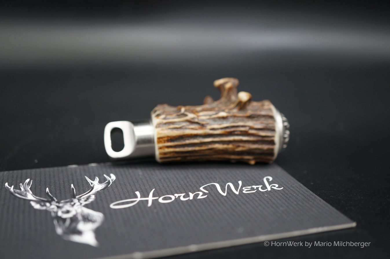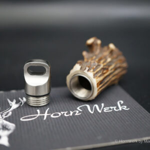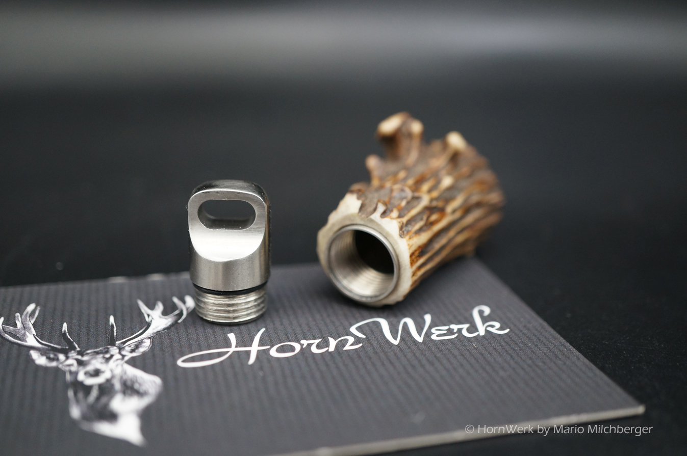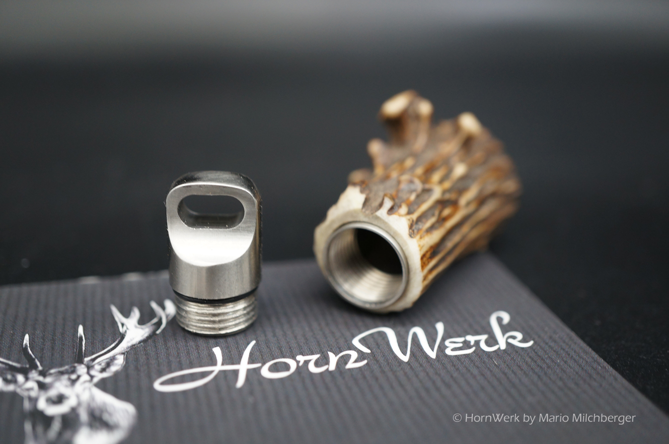 Pillenkapseln aus dem HornWerk sind ganz besondere Stücke und einfach perfekt für Jäger. Dickwandige und sehr hochwertige Edelstahlkapseln mit Drehverschluss werden für diese exklusiven Einzelstücke als Basis verwendet. Ob mobile Pillenkapseln wie diese oder runde Pillendosen für den Nachttisch. Im HornWerk sind beide Versionen verfügbar. Bei diesem Einzelstück wurde eine Pillenkapsel mit einem Durchmesser von 1,05CM und einer Höhe von 3,9CM eingearbeitet in Reh. Die Kapsel ist mit einer Dichtung versehen. Somit Wetterfest und auch perfekt als Schlüsselanhänger geeignet. Einfach wunderbar um seine Pillen immer bei sich zu haben. Ich wünsche bereits vorab viel Freude mit diesem wunderschönen Einzelstück. Lg Wmh Mario vom HornWerk