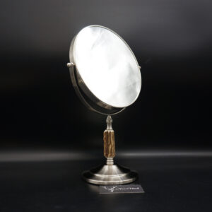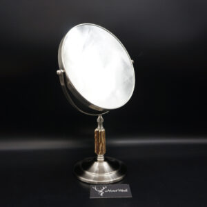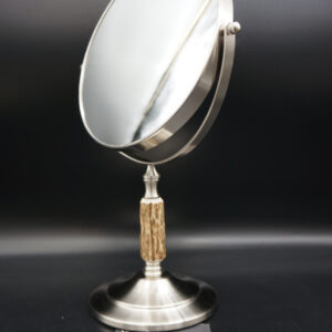 Ein ganz besonderes Stück und einfach perfekt für das jagdliche Badezimmer. Ein wunderschöner und sehr hochwertiger Spiegel kombiniert mit Hirschgeweih. Einfach wunderbar in Optik und Funktion. Der Spiegel hat auf beiden Seiten unterschiedliche Vergrößerungen. Auf der ersten Seite: 1 zu 1 – auf der zweiten Seite 1 zu 3. Weiter ist der Spiegel um 360° Drehbar und die Halterung besteht aus einer hochwertigen Edelstahloberfläche. Die Gesamthöhe beträgt 35cm und der Spiegeldurchmesser beträgt 20cm. Ein ganz wunderbares Unikat und ich wünsche bereits vorab viel Freude mit diesem Einzelstück. Lg Wmh Mario vom HornWerk