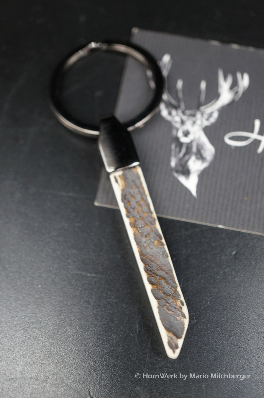 Den Schlüsselbund hat man meist bei sich und um so schöner ist es, wenn einem die Jagd ständig in Erinnerung gerufen wird. Genau dies erreichen wir mit diesem hochwertigen Schlüsselanhänger mit Hirschhornplatte. Das Hirschgeweih wurde perfekt für dieses Einzelstück angepasst. Künftig wird jeder einzelne Griff, jeder einzelne Blick zum Schlüssel für Begeisterung sorgen. Ich wünsche bereits vorab viel Freude mit diesem großartigen Unikat. Lg Wmh Mario vom HornWerk