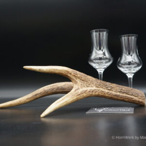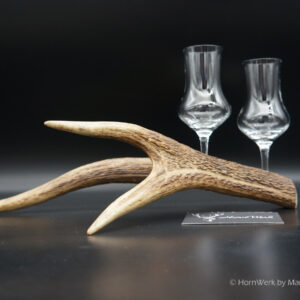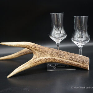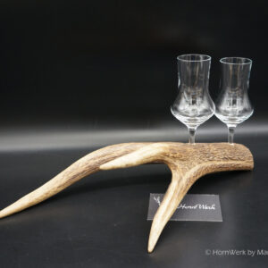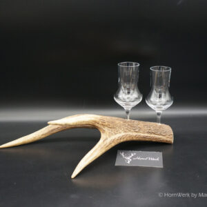 Eine Schnapsbar aus dem HornWerk ist ein wahrer Blickfang. Dieses Stück stellt ein absolutes Highlight dar. Gefertigt mit zwei Grappagläser, welche geschnitten, geschliffen, poliert und perfekt in das Hirschhorn eingepasst wurden. Die Bar steht absolut sicher und perfekt. Das Geweihende wurde bei diesem Stück in Natur belassen. Ganz besondere Unikate wie dieses Stück werden sämtliche Blicke auf sich ziehen und diese Unikate eignen sich auch perfekt als Geschenk für Jäger. Ich wünsche bereits vorab viel Freude mit diesem schönen Stück. Lg Wmh Mario vom HornWerk. (70)