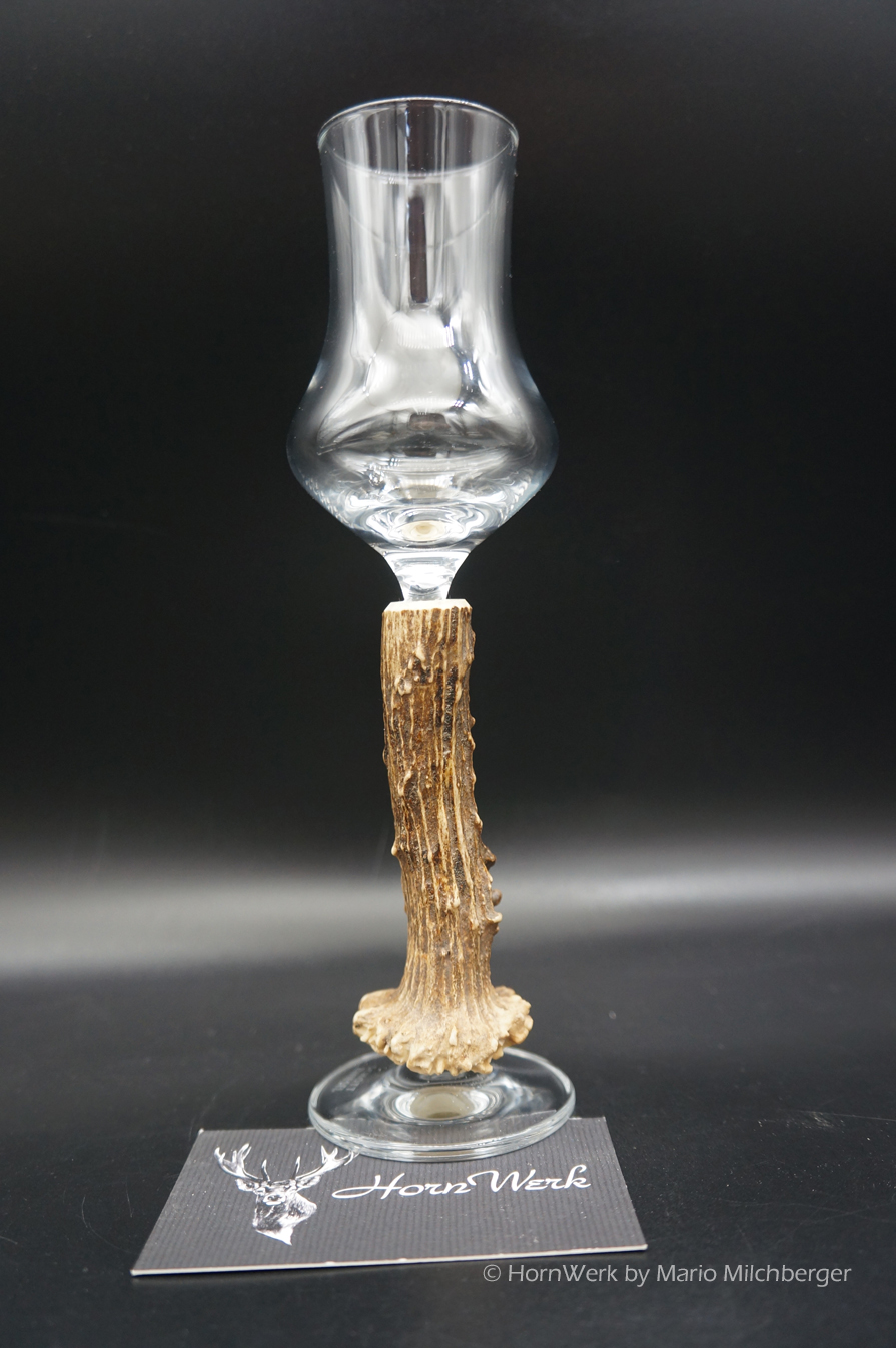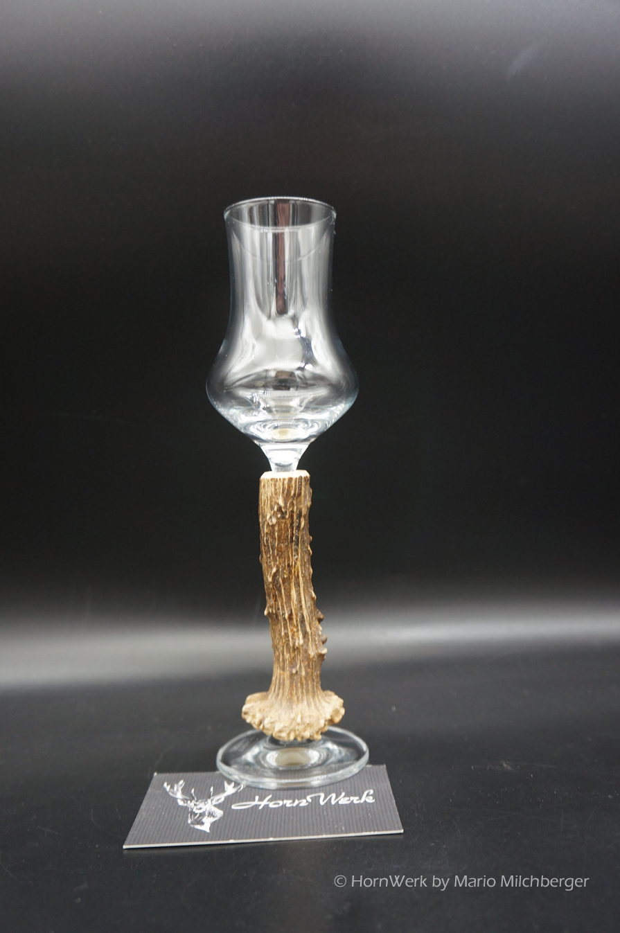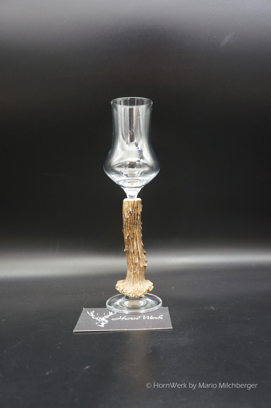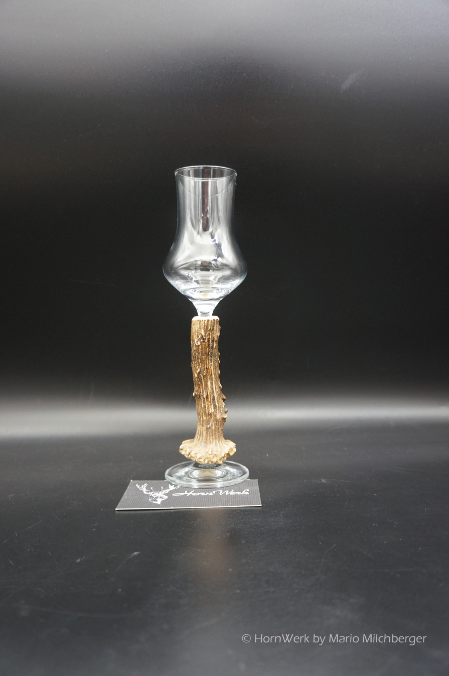 Ein großartiges und wunderschönes Schnapsglas. Das Griffstück bei diesem Einzelstück wurde aus Reh gefertigt.