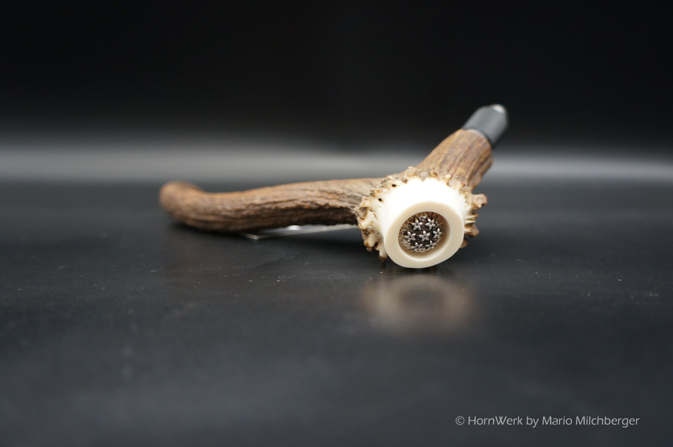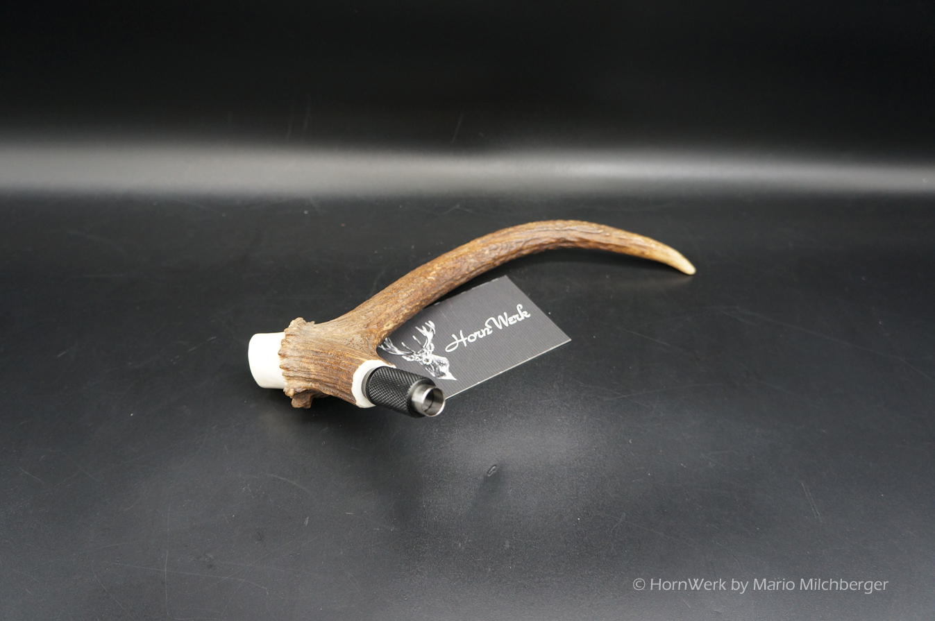 Perfekt zu den HornWerk Zigarrenetuis passt dieser Zigarrenbohrer. Eingearbeitet in Hirschhorn liegt dieses Einzelstück perfekt in der Hand und erfüllt seinen Zweck ganz hervorragend. Die Bedienung erfolgt über einen zuverlässigen Drehmechanismus. Das Bedienstück gewährleistet durch seine raue Oberfläche einen perfekten Halt und das gehärtete Messer aus Stahl sorgt für viel Freude im Umgang mit diesem Unikat. Beim Eindrehen des Messers erfolgt der automatische Auswurf des ausgeschnittenen Zigarrenstücks. In Optik und Funktion ein perfekter Zigarrenbohrer in absolut bester Qualität. Der Durchmesser des Bohrers beträgt 10mm und somit ist dieses Einzelstück perfekt für Zigarren mit einem großen Ringmaß ausgelegt. An diesem Stück ist alles perfekt und ich wünsche bereits vorab viel Freude mit diesem Unikat. Lg Wmh Mario vom HornWerk